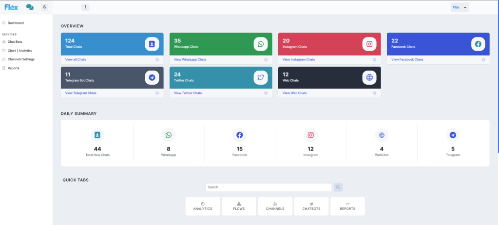 Manage calls, SMS, WhatsApp, email, Facebook, X (Twitter), Instagram, Telegram, Messenger, and Google Messages from a single platform. With AI-powered automation, real-time analytics, and seamless CRM integration, Fléx helps you engage customers efficiently, improve response times, and scale your support effortlessly.